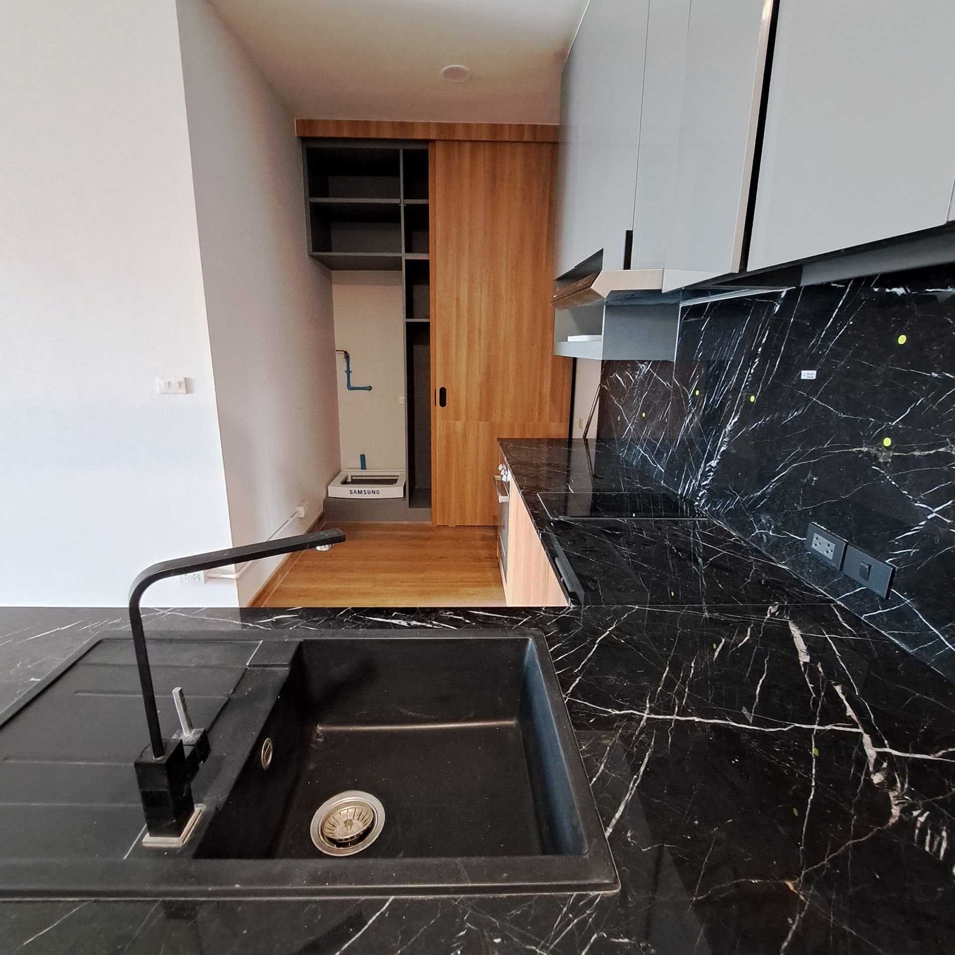 สีดำพื้นเรียบลายเส้นขาวคมชัด ใช้ตกแต่งผนัง เคาน์เตอร์ และพื้นให้ดูหรูหราโมเดิร์น" ลาย: เส้นสีขาวคมและชัดเจน บางเส้นใหญ่ บางเส้นเล็ก แตกเป็นแนวธรรมชาติ สไตล์: หรูหรา โมเดิร์น และมินิมอล การใช้งานยอดนิยม: เคาน์เตอร์ครัว โต๊ะรับแขก ผนังตกแต่ง หรือพื้นห้อง