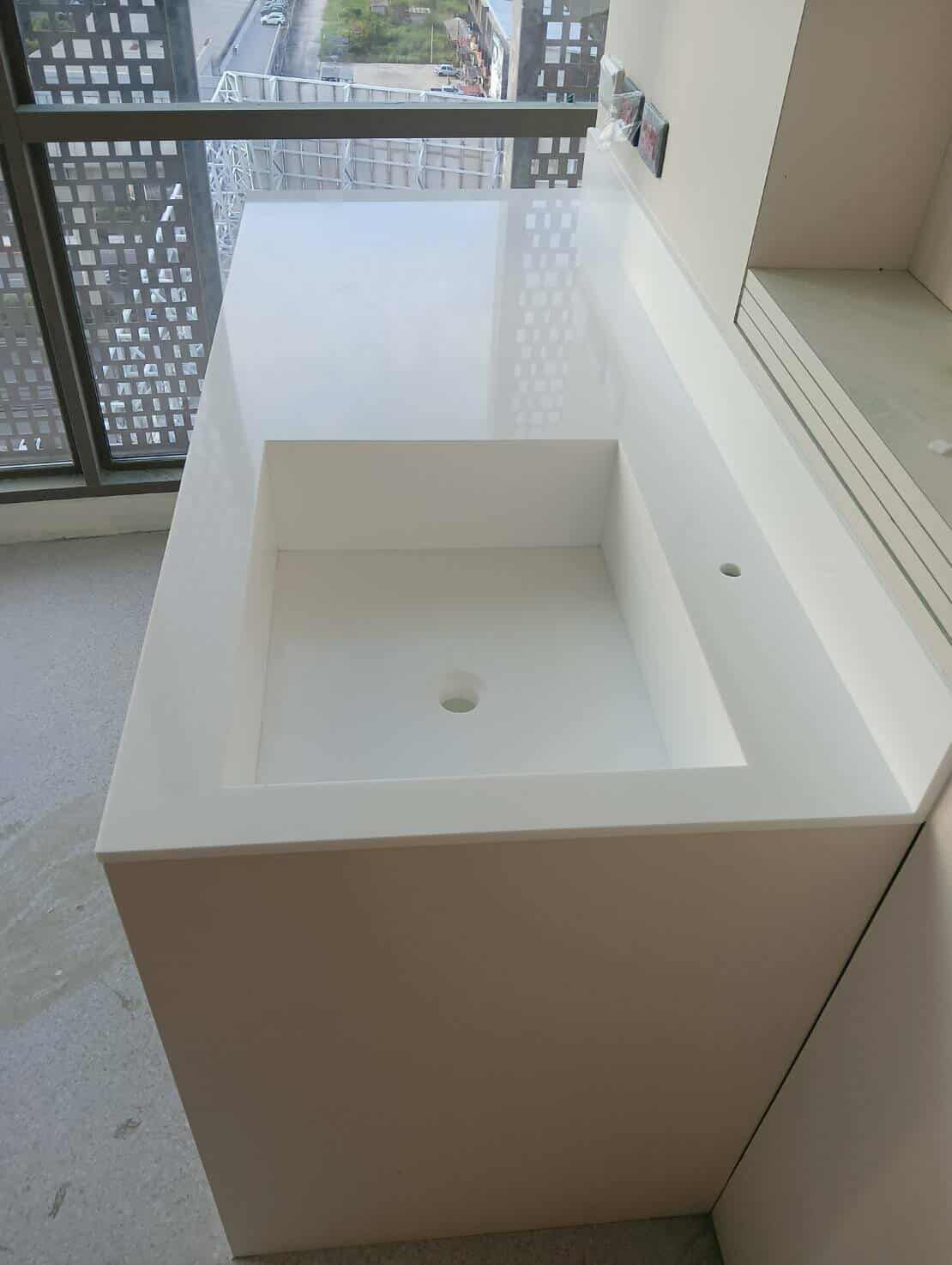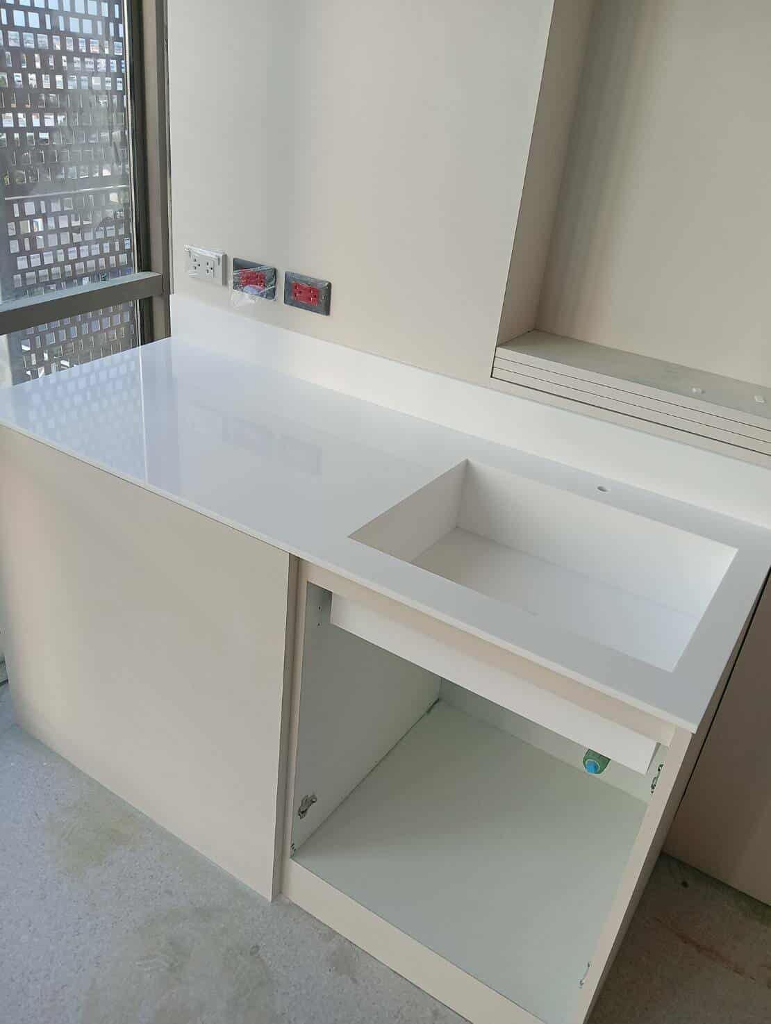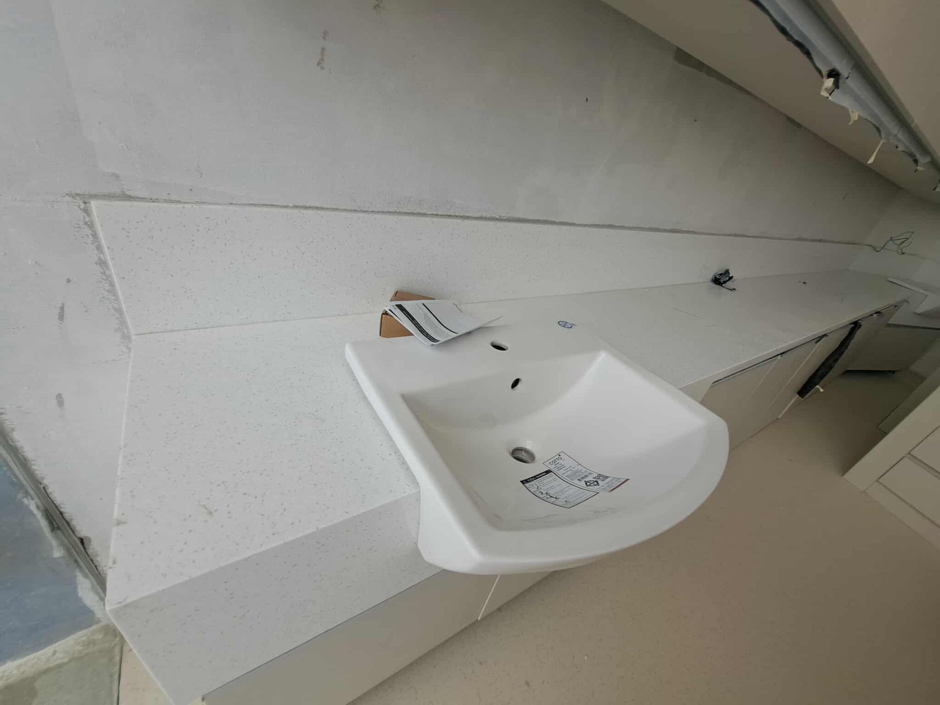 หินสังเคราะห์ดัดโค้งไร้รอยต่อ ดูสะอาด ขาวสว่าง และเป็นมิตร