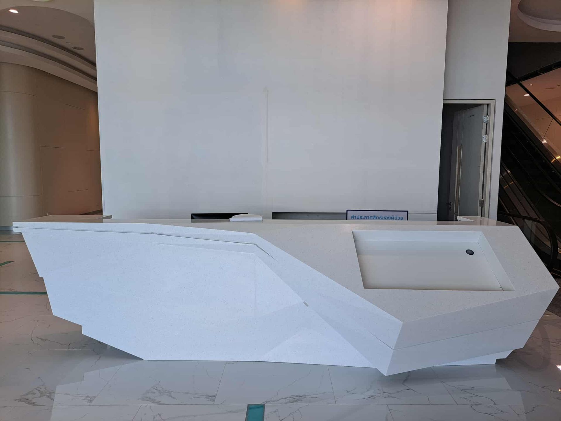 #หินสังเคราะห์ #SolidSurface #เคาน์เตอร์ประชาสัมพันธ์ #ไร้รอยต่อ #ดูสะอาด #ดูเป็นมิตร #หินดัดโค้ง #WealthDecoration #MyStoneYourStyle